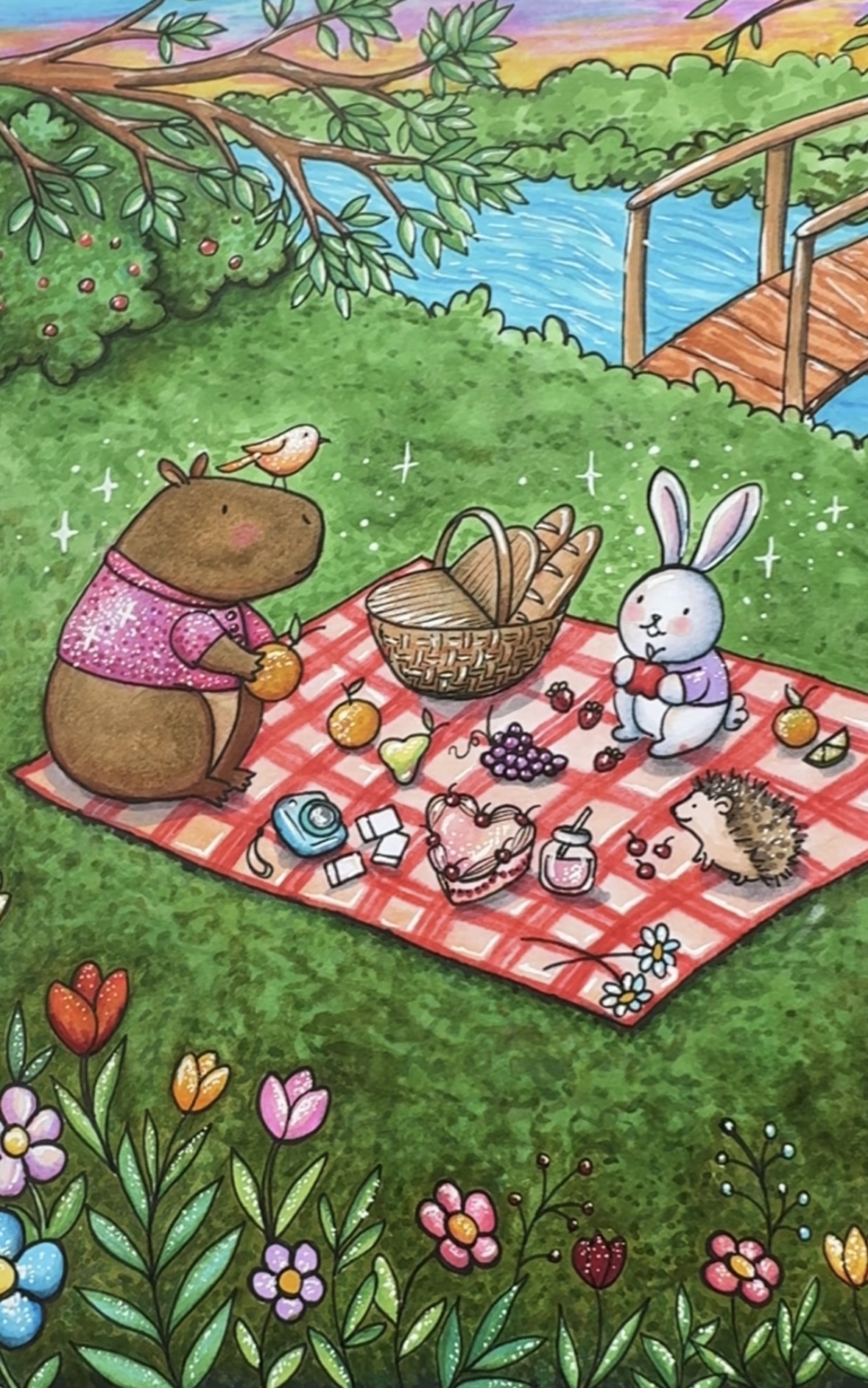 * Paper: If using downloadable pages like the capybara picnic, standard printer paper is fine for pencils. For markers or wetter mediums, consider slightly heavier paper (e.g., 120gsm) to prevent bleed-through. A smooth surface is generally preferred.